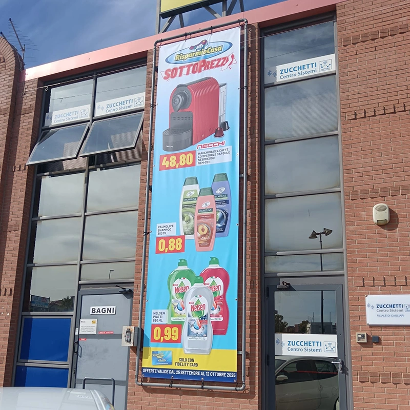 PubbliA offre questo servizio a enti pubblici, aziende e associazioni, realizzando striscioni che vengono generalmente appesi in alto e attraversano le strade, garantendo alta visibilità e leggibilità anche a distanza. Sono uno degli strumenti più immediati e diffusi, sia all’interno delle città che lungo le strade principali o nei paesi. Le immagini e le scritte possono essere riprodotte anche su edifici o ingressi di luoghi chiave per l’evento.